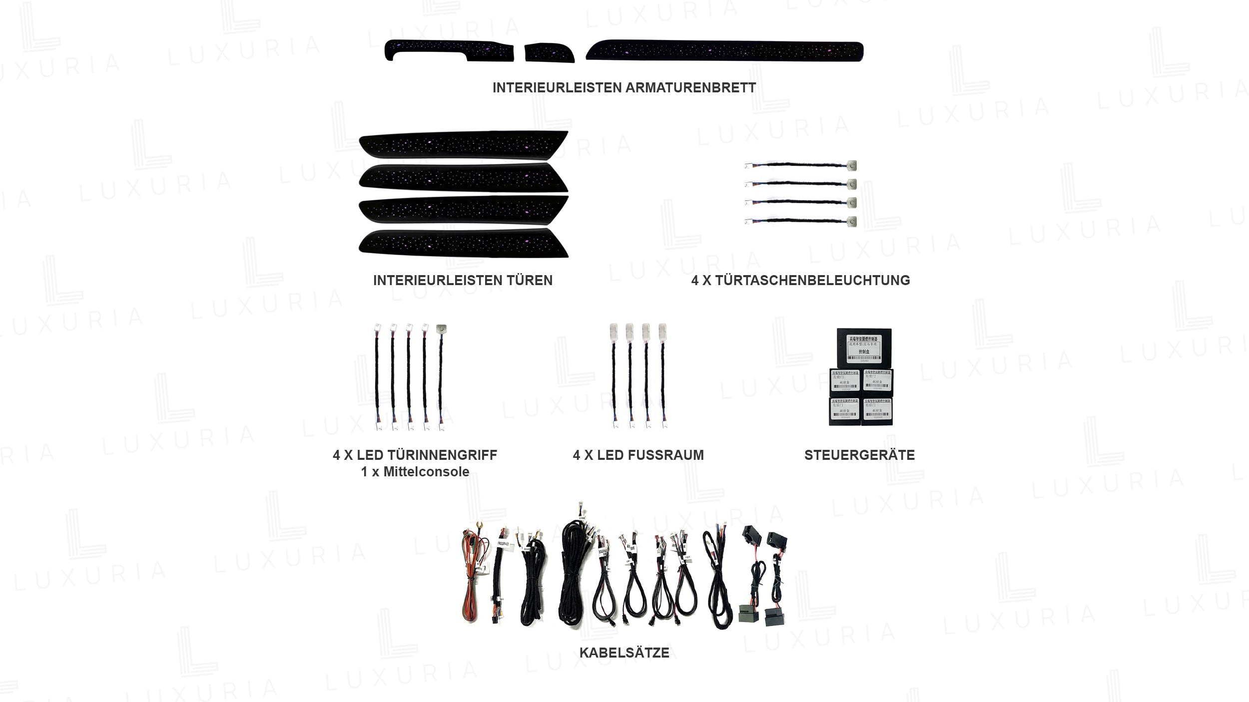 Mit dem LUXURIA Nachrüstsatz V2 haben Sie die volle Kontrolle über die Ambientebeleuchtung. Dank modernster Technologien bietet das System flexible Steuerungsoptionen: