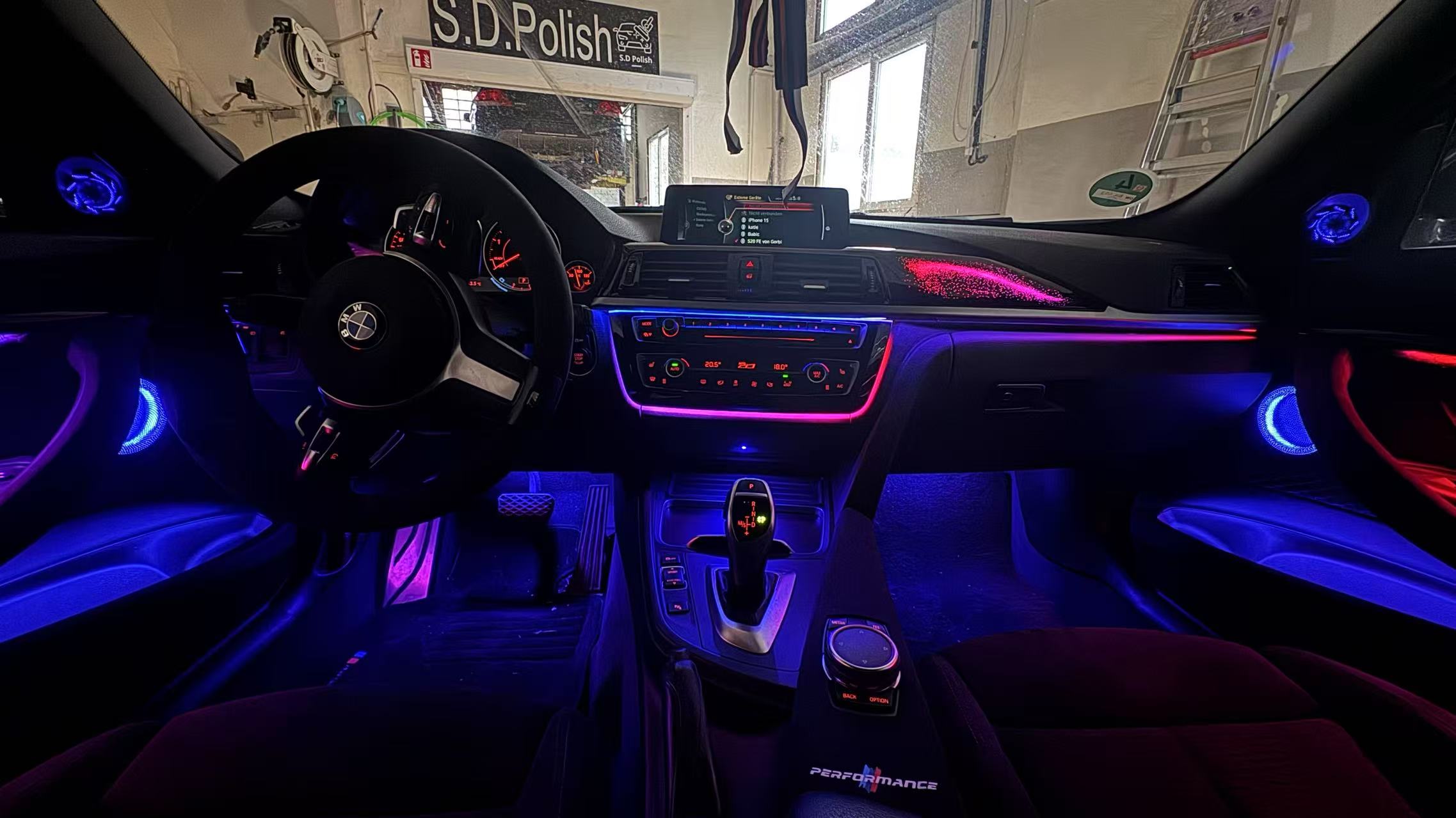 Die Ambientebeleuchtung wurde speziell für die BMW 3er Modelle (F30, F31, F34) entwickelt und fügt sich harmonisch in das Interieur ein. Hochwertige Materialien und präzise Verarbeitung sorgen dafür, dass das System wie ein serienmäßiges Ausstattungsmerkmal wirkt.