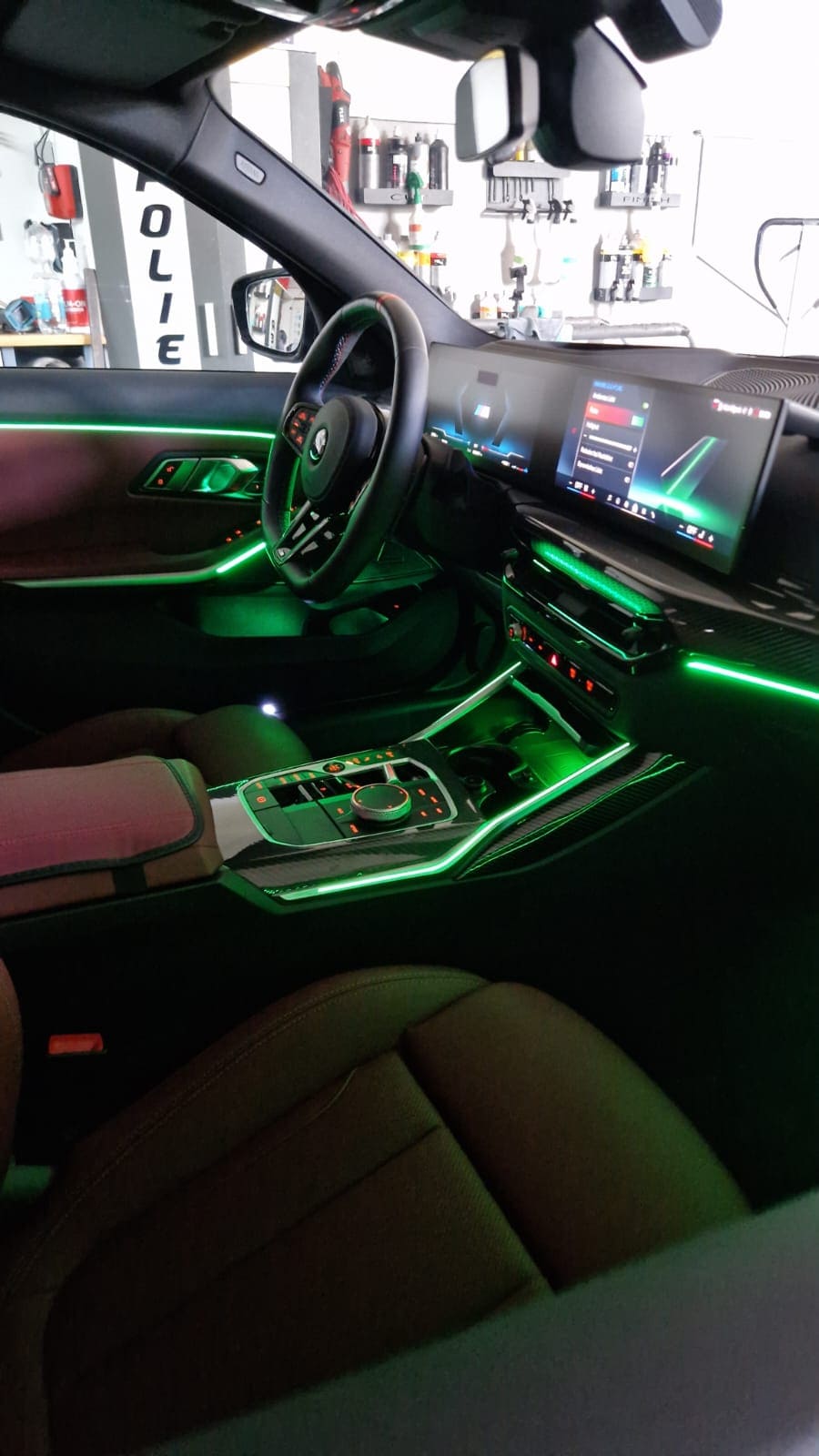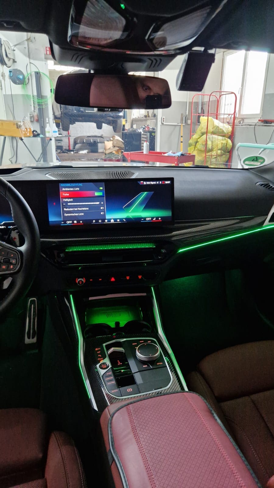 - Steuerung über das iDrive: Nahtlose Integration in das BMW iDrive-System ermöglicht es Ihnen, Farben, Helligkeit und Lichteffekte bequem über den zentralen Bildschirm anzupassen.