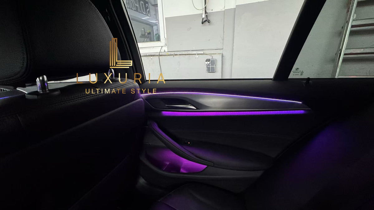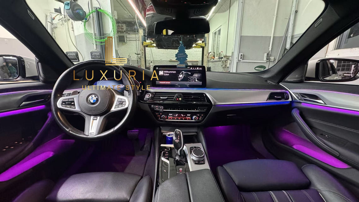 Mit dem Ambientebeleuchtung Nachrüstsatz für den BMW 5er (G30 G31) von LUXURIA verwandeln Sie Ihr Fahrzeug in eine luxuriöse Wohlfühlzone. Nutzen Sie diese Nachrüstlösung, um Stil, Komfort und Sicherheit zu vereinen und jede Fahrt zu einem außergewöhnlichen Erlebnis zu machen!