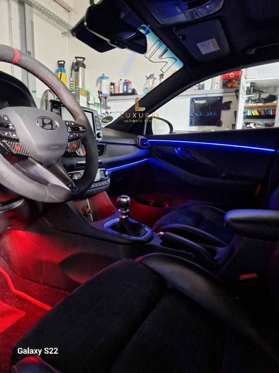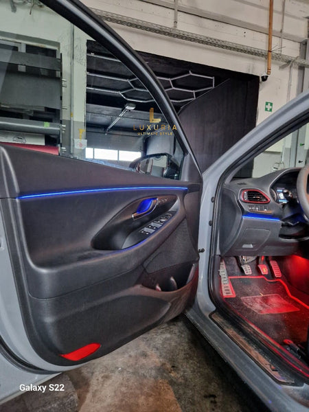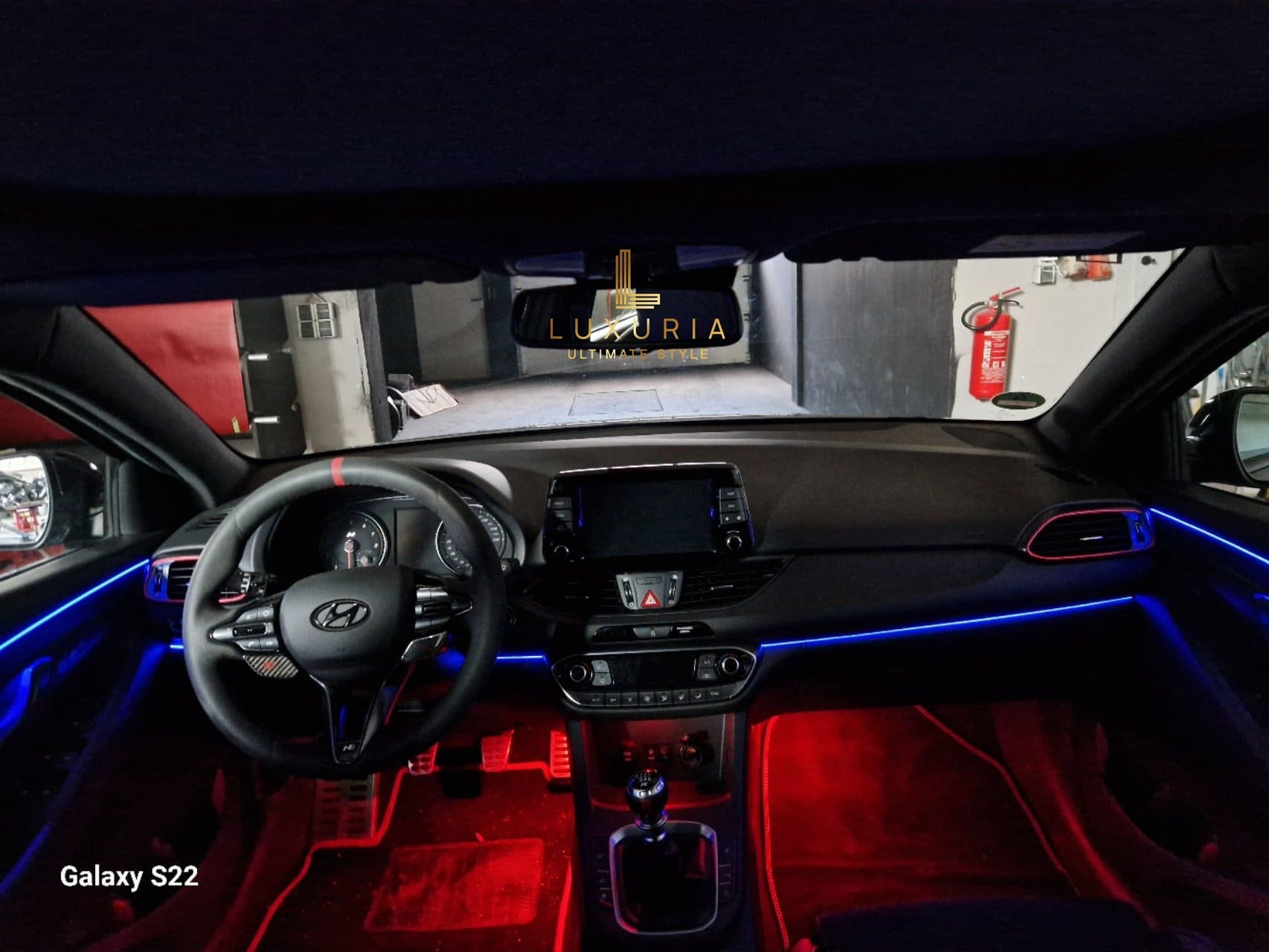 Mache deinen Hyundai i30 i30N zu einem einzigartigen Erlebnis auf der Straße, indem du die Ambientebeleuchtung mit LUXURIA nachrüstest. Kontaktiere uns noch heute für weitere Informationen und erlebe, wie dein Fahrzeug in einer einzigartigen Lichtatmosphäre erstrahlt!